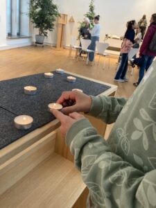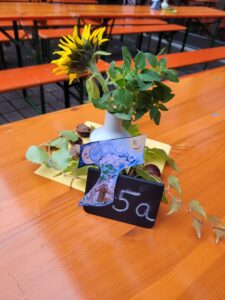 Gleich zum Auftakt sorgte die Schulband für eine gute Stimmung beim diesjährigen Franziskusfest. Im Anschluss konnte man die köstlichen Kuchen und das salzige Fingerfood der Kursstufe genießen und dabei locker ins Gespräch kommen. Die Kinder besuchten mit Begeisterung die Sonnengesangsstationen und sammelten dabei fleißig Sticker. Ganz besonders gefragt war der Vertrauensparcours in der Turnhalle und der persönliche Segen in der Kapelle Ein großer Andrang war natürlich beim Schminken und Fingernägellackieren.