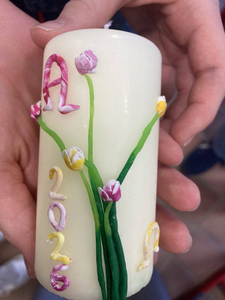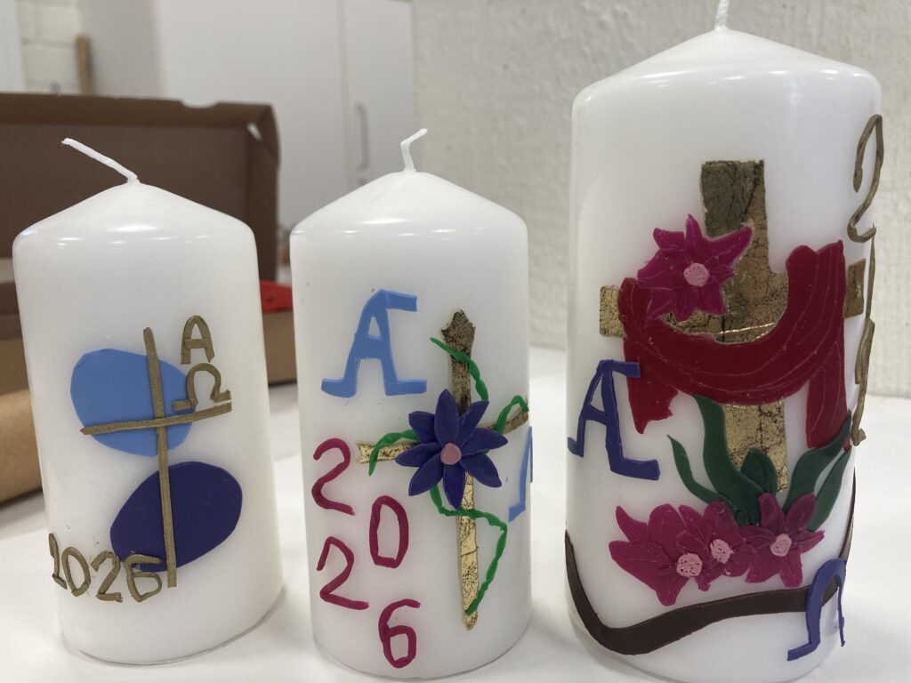 Mit viel Engagement und Freude setzten die Teilnehmenden ihre eigenen Ideen um. Dabei entstanden individuelle Kerzen, die nicht nur künstlerisch gestaltet waren, sondern auch eine persönliche Bedeutung trugen. So konnten alle froh in die Osterferien starten.